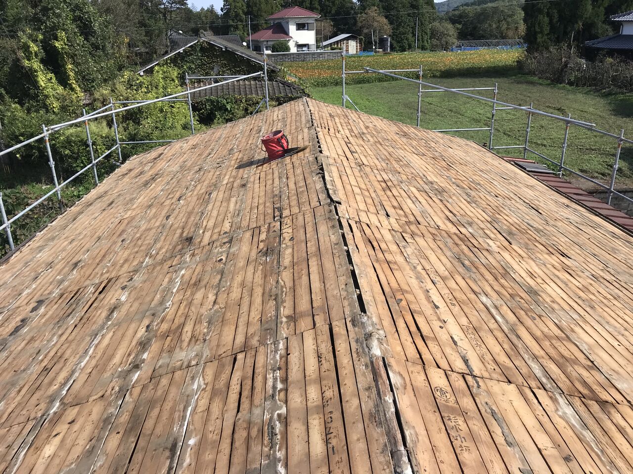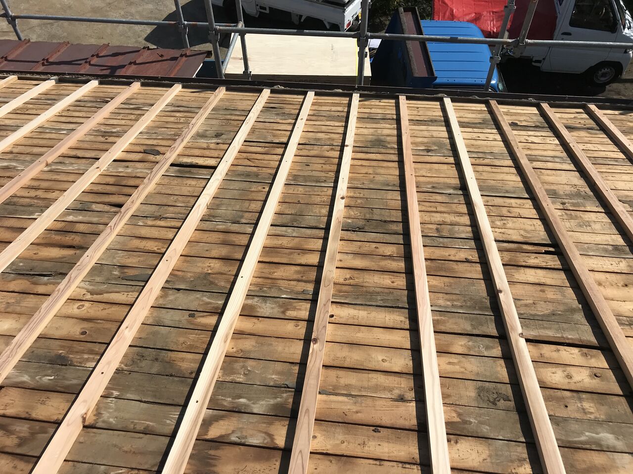 屋根の改修工事の様子