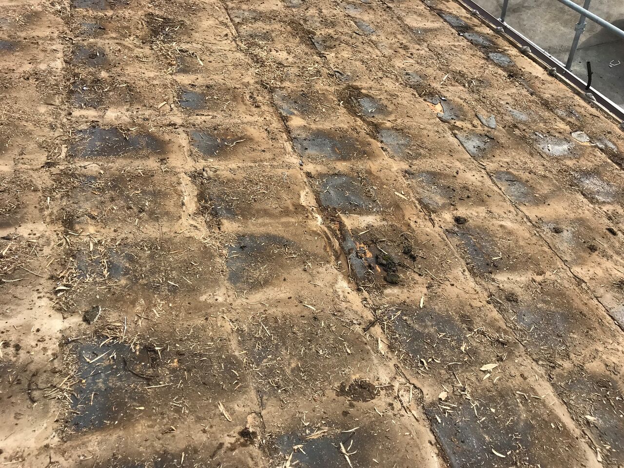 現在では、ドローンを使っての調査も多くなりました。細かい箇所まで拡大して見ることができ、実際に登ることがないので、既存の屋根を痛める心配がなく、また調査員が屋根から落下する危険性もないので普及してきている調査方法です。実際に、調査時間も抑えられる調査方法になります。