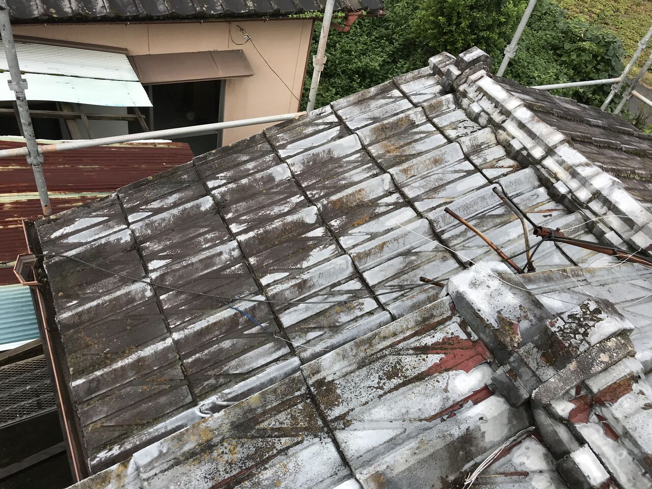 セメント瓦屋根から、ガルバリウム鋼板屋根に葺き替えます。