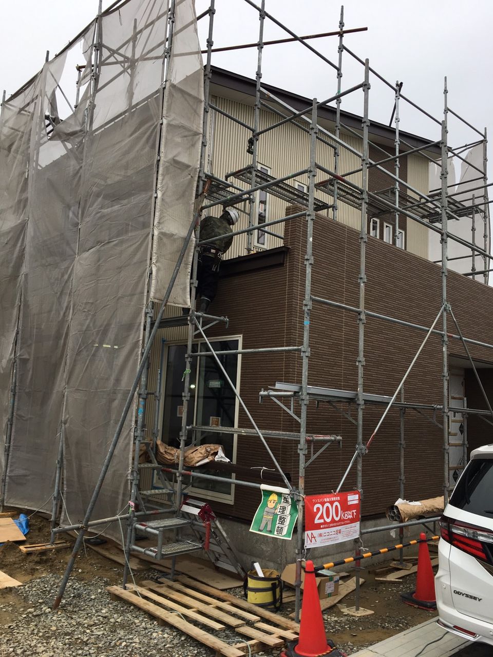 現在、河北郡津幡町庄の新築物件の外壁工事をさせて頂いております!