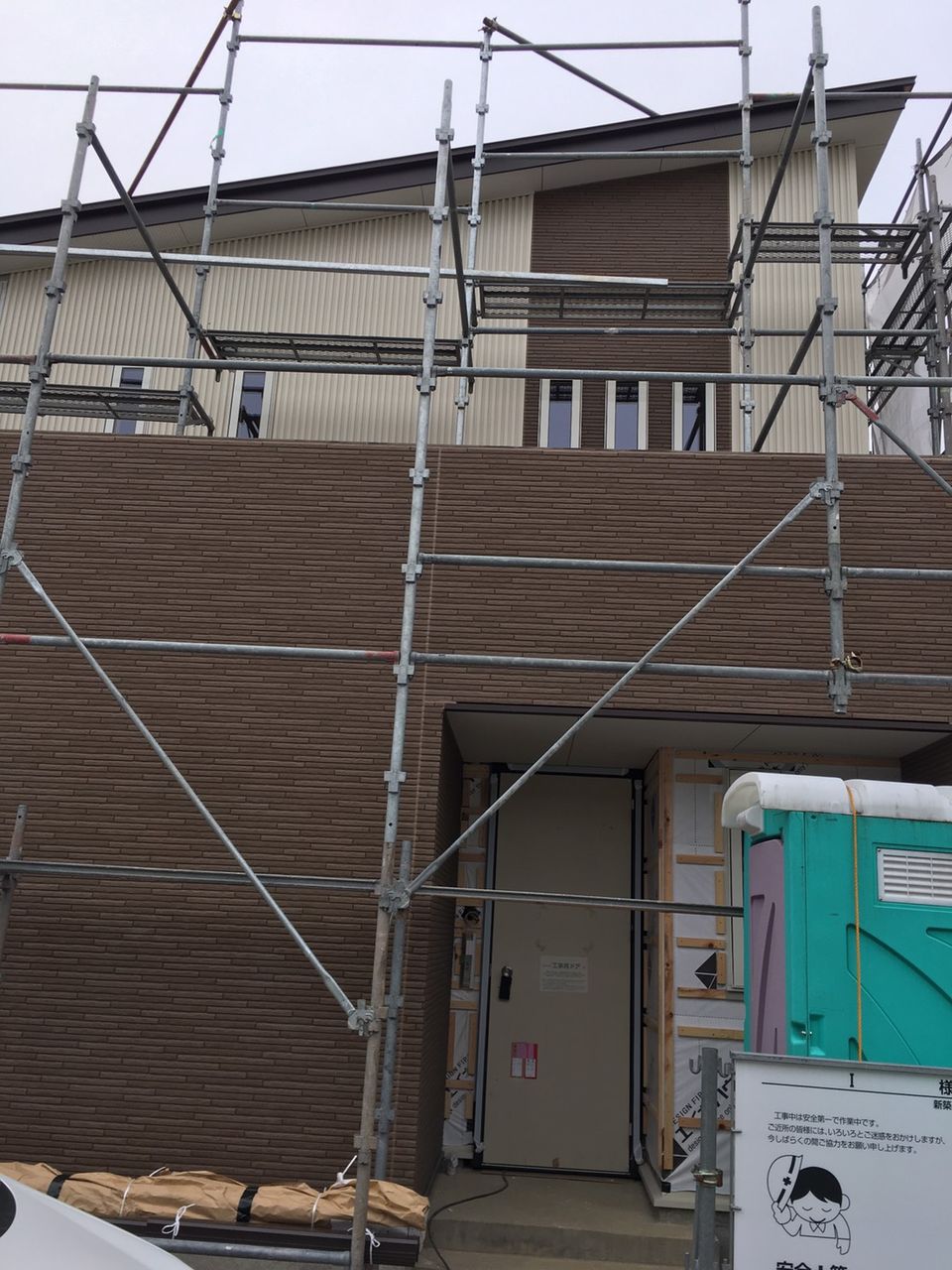 上棟してから1ヶ月で足場解体という元請け様からのご依頼でしたが、慌てて工事をしてもいい仕事にはならないので業者同士お話しながら、多少工期の延長ができて綺麗に仕上がりそうです。