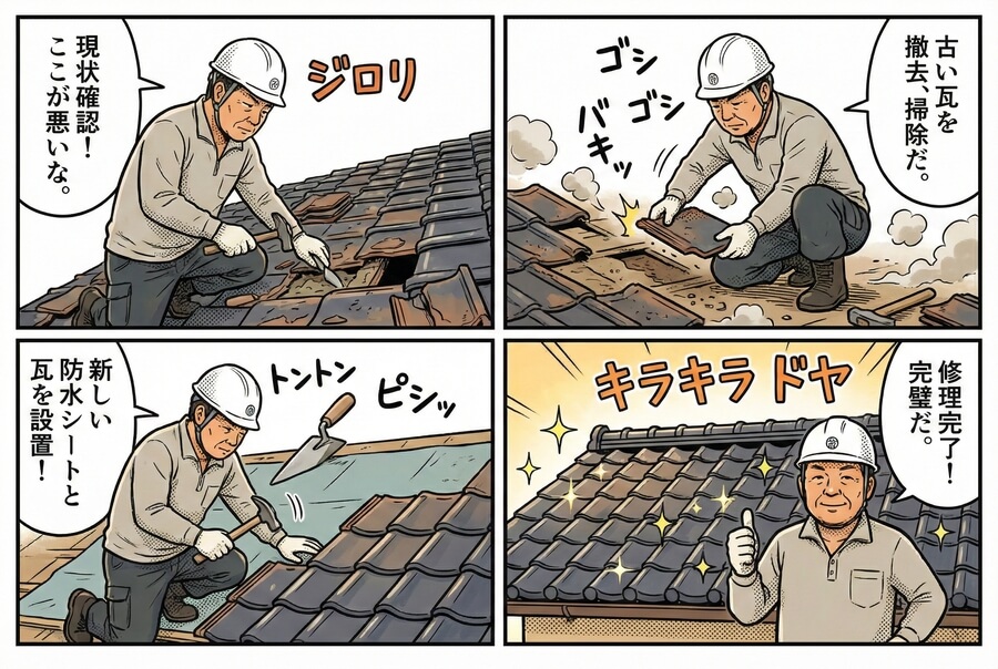 | 部分補修(シーリング打ち替え等) | 3万 〜 15万円 前後 | サッシ周りや外壁目地のコーキング打ち替え、軽微な瓦ズレ補修など。 |