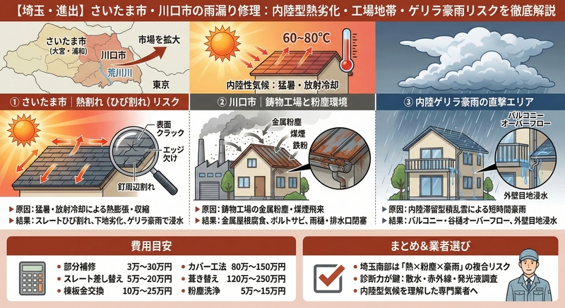 まとめ|埼玉南部の雨漏りは「熱×粉塵×豪雨」の複合リスク