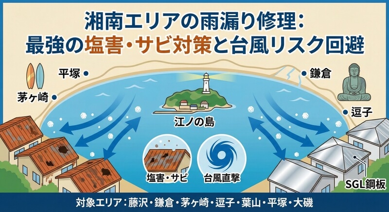 この記事では、湘南の海を知り尽くした私たちが、「絶対に錆びさせない」「台風に負けない」ための雨漏り修理・屋根リフォームについて詳しく解説します。
