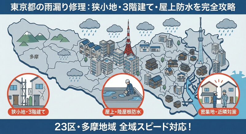 この記事では、東京特有の過酷な住宅環境を知り尽くした私たちが、**「足場問題」や「都市型水害」**に負けない、確実な雨漏り修理・防水工事について解説します。